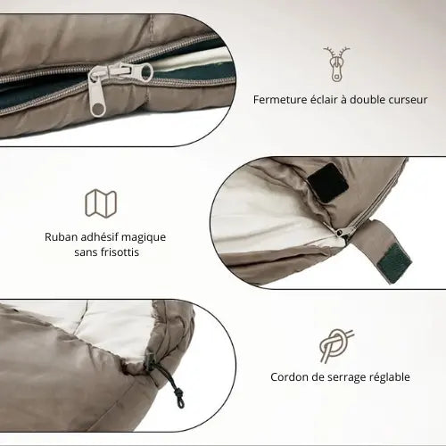 Nos sacs de couchage sont spécialement conçus pour répondre aux exigences des environnements les plus hostiles. Voici les principales caractéristiques qui distinguent notre collection :
